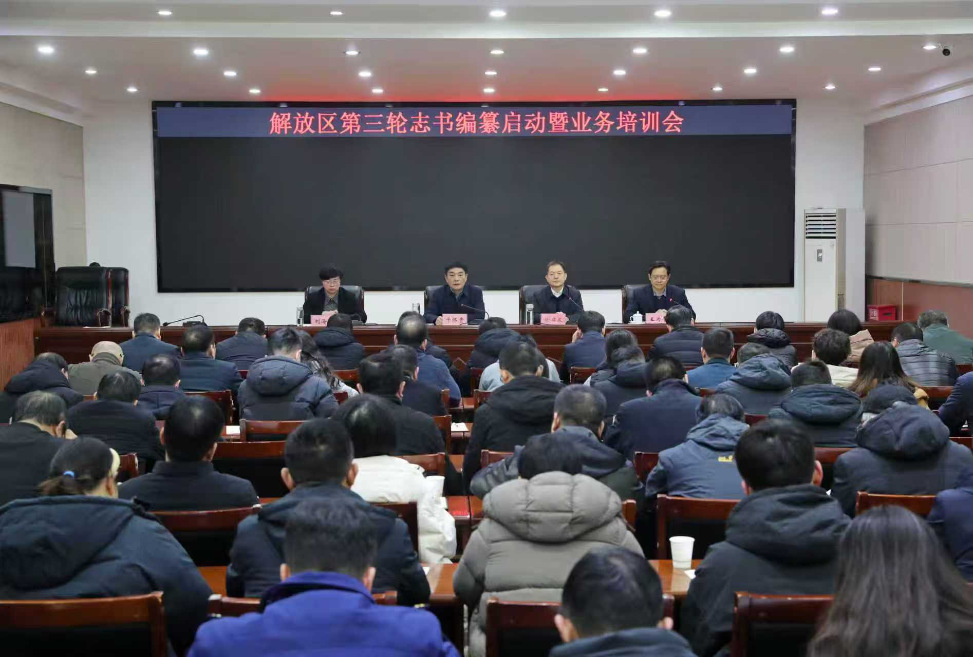 1月20日上午,解放区第三轮志书编纂启动暨业务培训会召开。市委党史和地方史志研究室主任徐启发致辞。解放区委书记、区长千怀贵讲话,区委常委、区政府常务副区长刘海霞宣读《关于成立解放区地方···